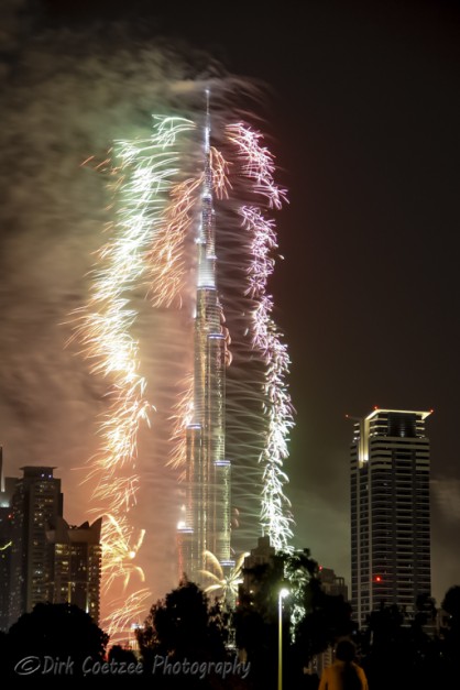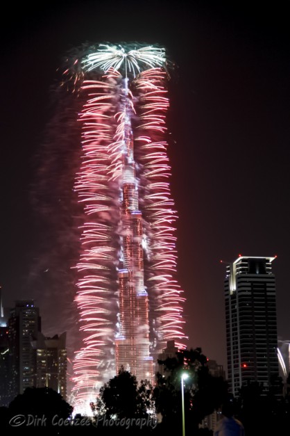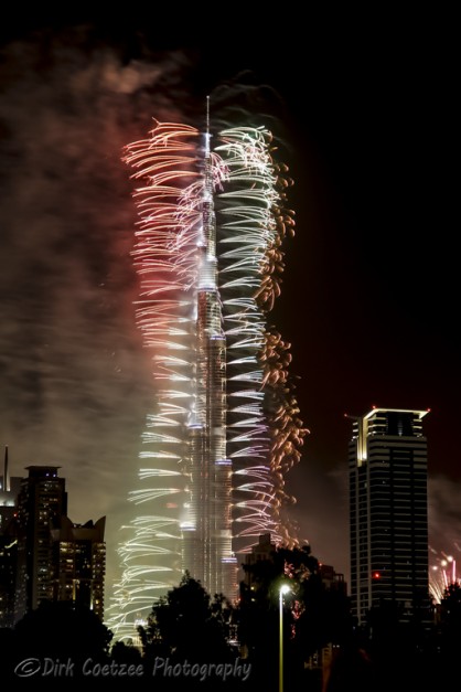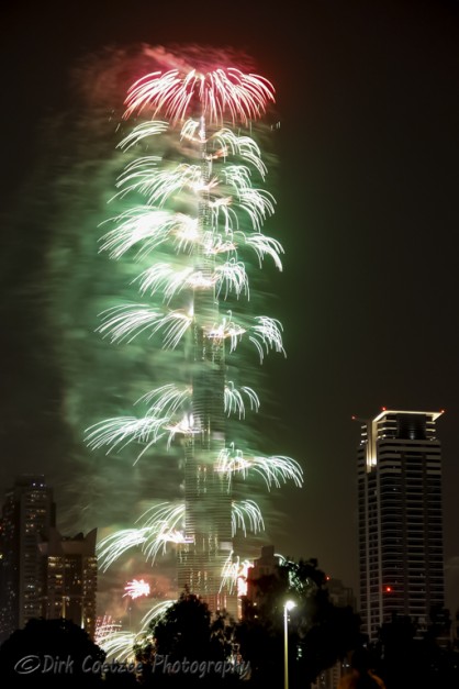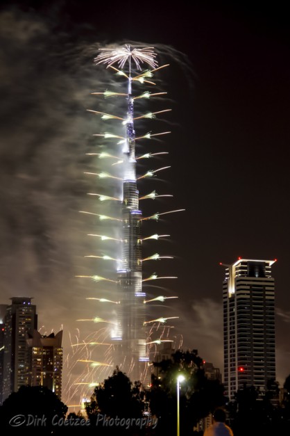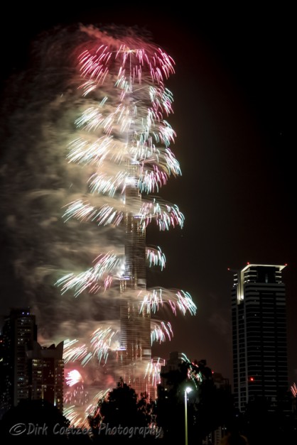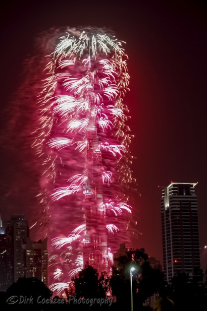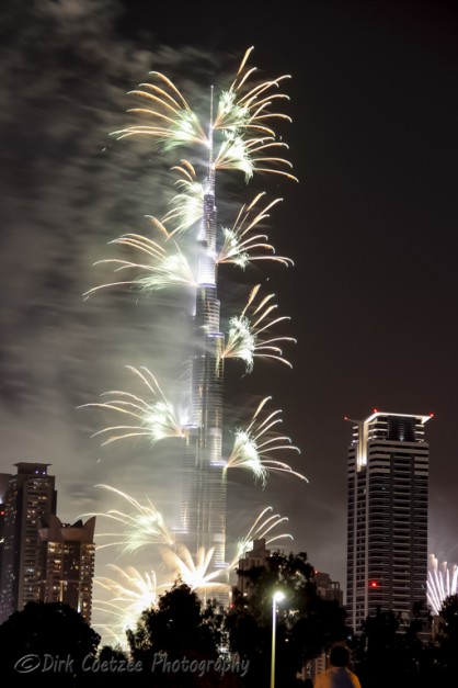 Having worked and lived in the UAE (United Arab Emirates) before, I was very familiar with the tower, having photographed it from the foundations up to the time of completion. New Year festivities have always eluded us before. We were either in South Africa or in Germany or travelling between.