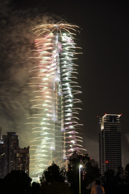• Dubai (UAE) 2014 New Year's fireworks at the 811 m high Burj (tower of) Khalifa